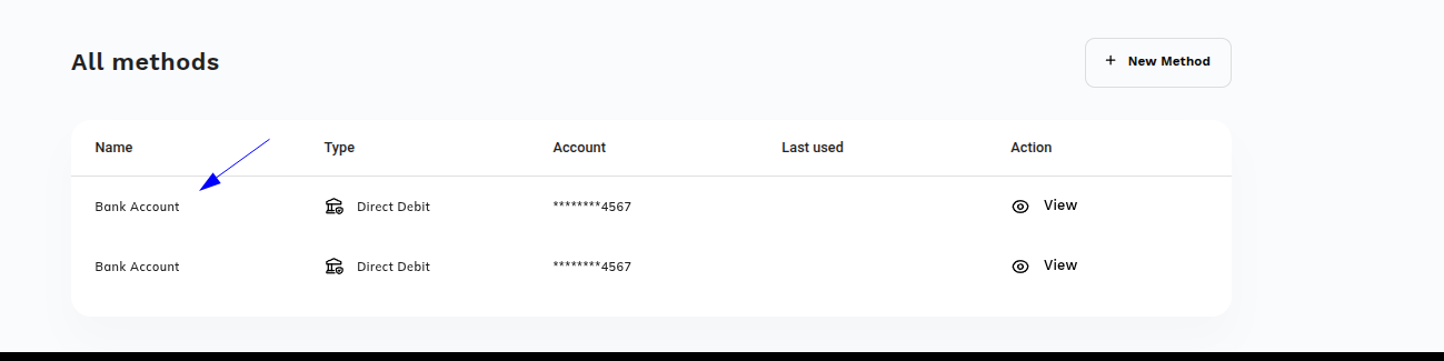 The method name is a nickname for your payment method, and you can choose to call it anything you wish. It is there to help you easily identify the different payment methods you may have set up. For example: CIBC Savings account, RBC Visa, TD Debit.