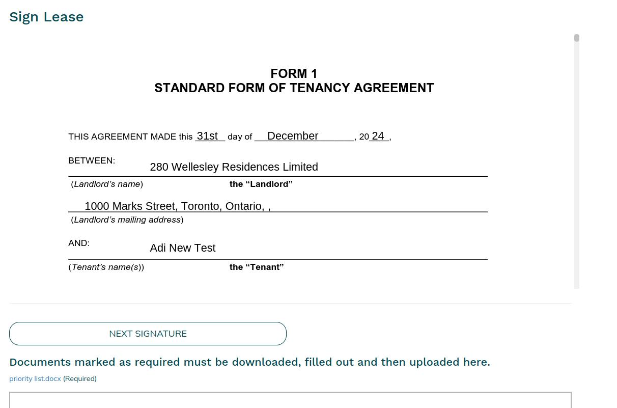 - Click on Next Signature it will go through the lease to each place that needs to be signed.